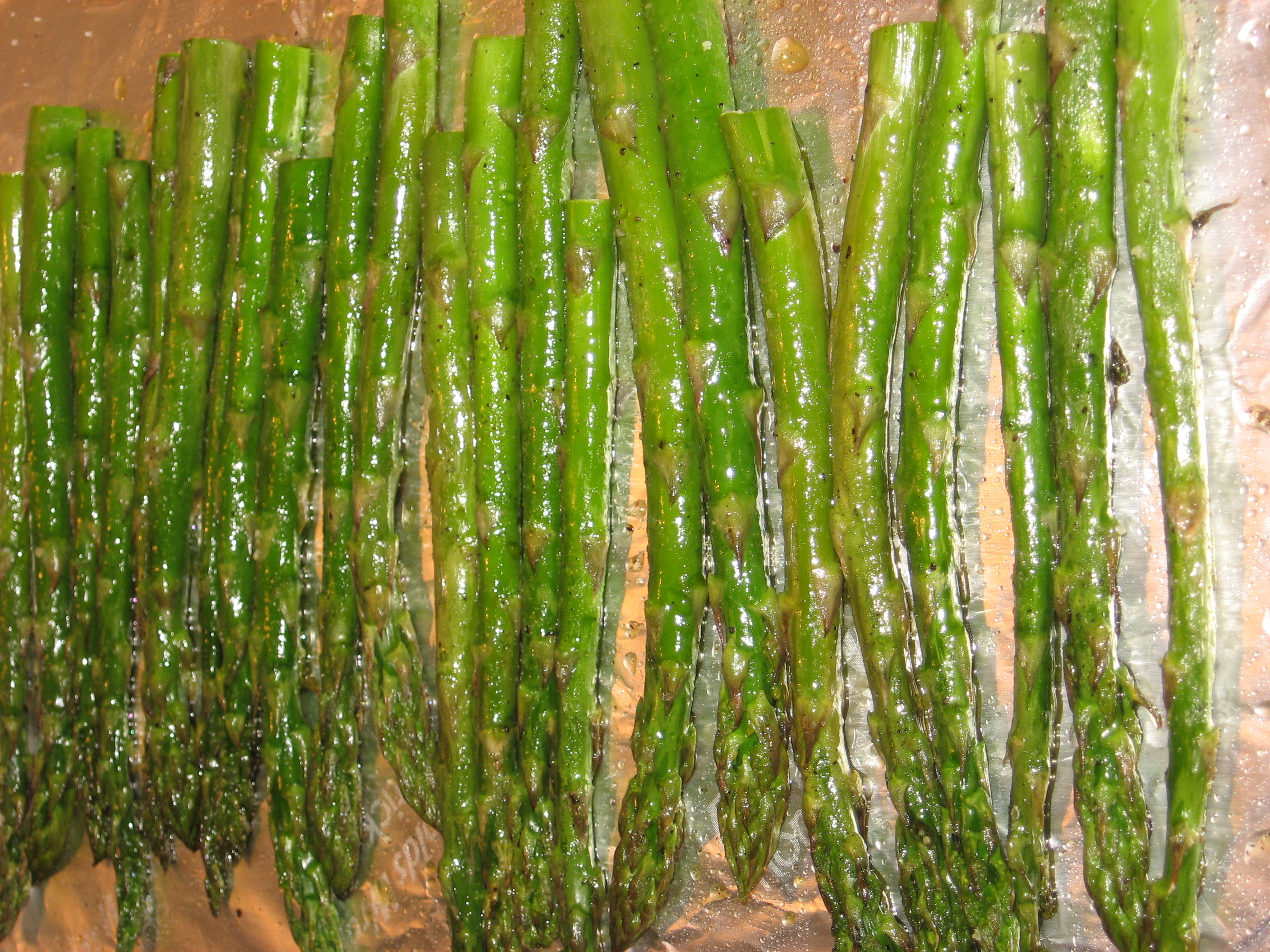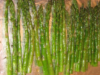 –Loosely place asparagus on lined baking sheet.