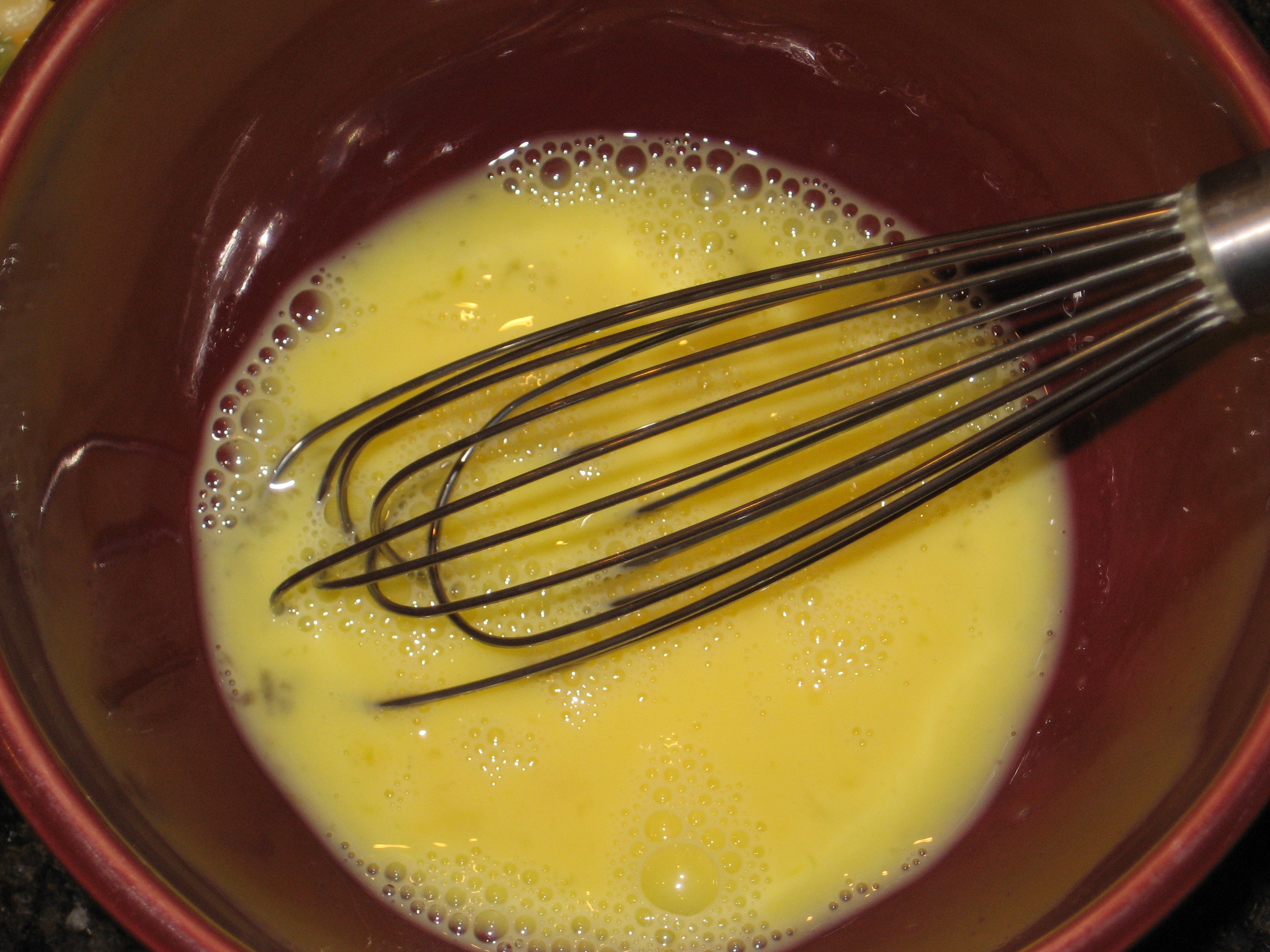 –Whisk ingredients together until thoroughly mixed.