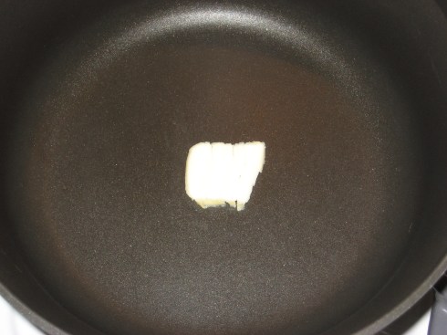 –Place a nonstick skillet over medium low-heat and drop in a small pat of butter.
