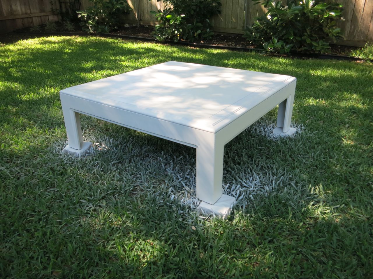 Then I used Kilz Complete Primer to prepare the table for painting. I forgot to put a drop cloth down so I spray painted the grass. Oops.