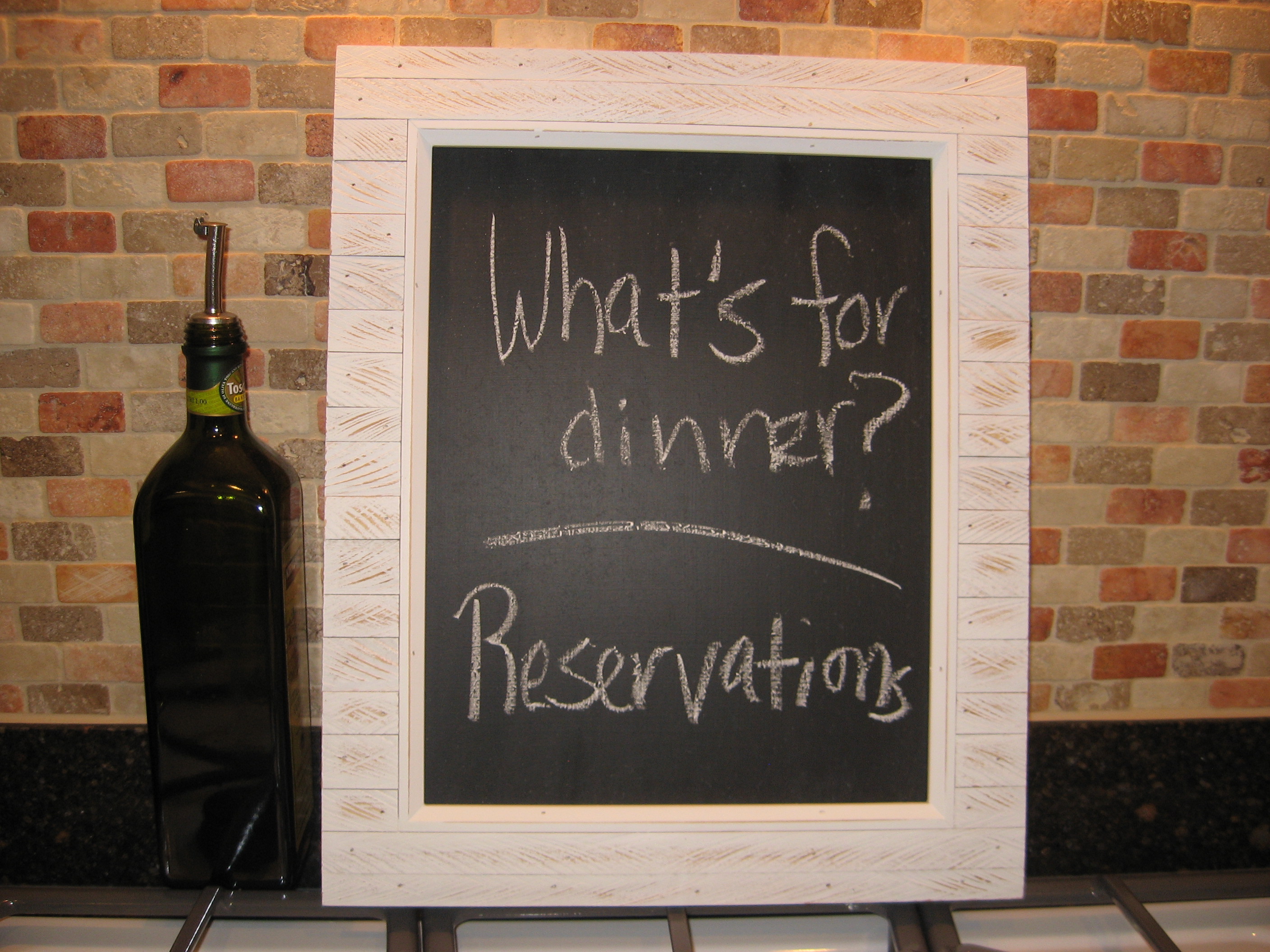 I’ve found myself looking at everyday items Around My Home, wondering if they’d make good chalkboards: picture frames, flower pots, and even old salsa jars (the lids or the glass or both!)